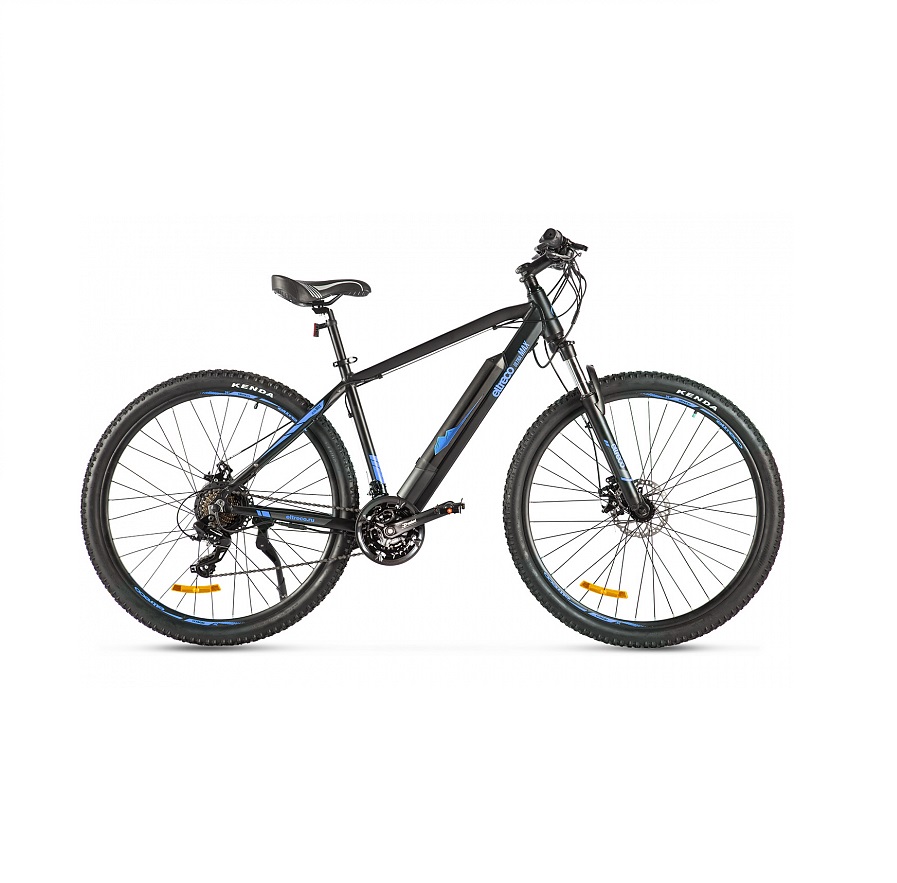 У новой модели от Eltreco лёгкая алюминиевая рама с интегрированной съёмной батареей (улучшенная развесовка по сравнению со старой моделью), большие колёса 29" и покрышки Kenda с универсальным протектором, 21 скорость от Shimano, пружинно-эластомерные амортизационная вилка с блокировкой, надёжный электромотор 350 Ватт и аккумуляторная батарея на 12 Ач, позволяющая преодолевать большие расстояния без подзарядки!